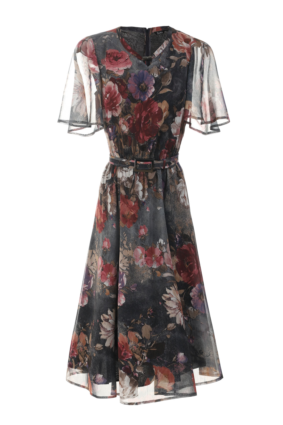 A flowy short dress with sheer sleeves. The viscose lining and loose fit make it very comfortable, perfect for hot summer days. The belt, which can be removed if desired, accentuates your waist and adds a touch of femininity. Pair it with a matching handbag and footwear to create the perfect outfit for coffee outings with friends.