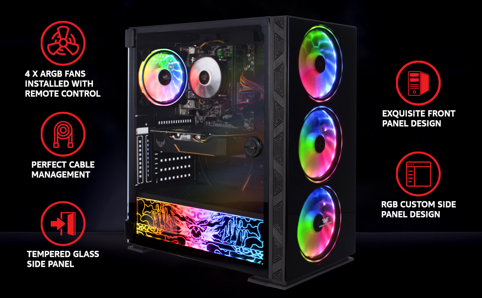Vortex V4 ARGB Gaming Case with 4 x ARGB Fans Tempered glass side – Choose the colours of your case depending on your mood and styling preferences and marvel at your amazing PC internals.